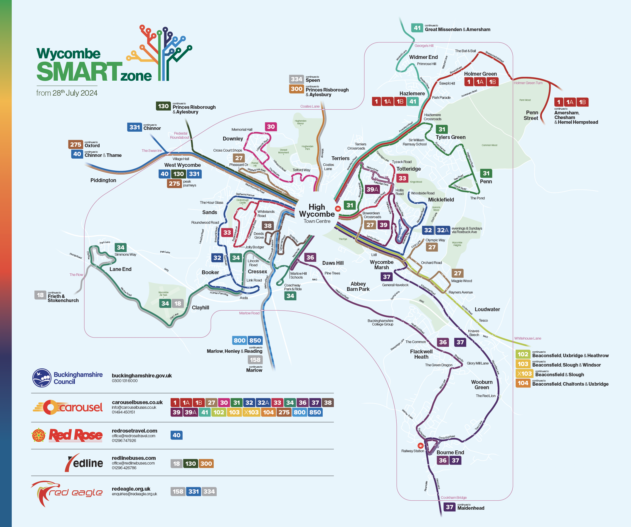 Wycombe SMARTzone allows you to travel on any Carousel, Redline, Red Rose or Red Eagle bus services within the designated zone in and around High Wycombe. You no longer need separate tickets for each operator, making your travel simple, more flexible and convenient.